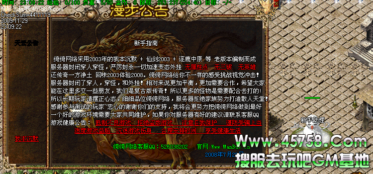 - ☉ 私服GM学院2002年我本沉默版本+仙剑2.0+武易传奇精华骑马炼丹炉比武蚂蚁洞+补丁