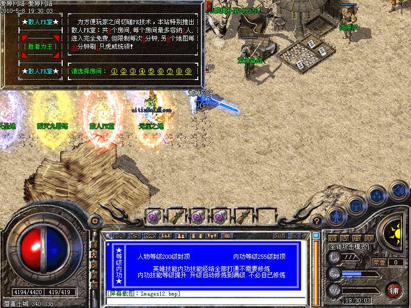 激情殿堂:每秒1200万经验200万内功经验!(可PK区域,可挂到本服顶级200级,内功255级)