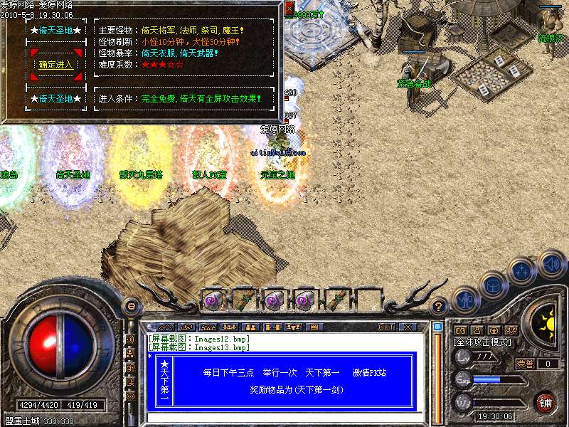 ②.天下第一:每天下午3点,土城左上角进入,最后一个离开获得"天下第一剑"和500万元宝!