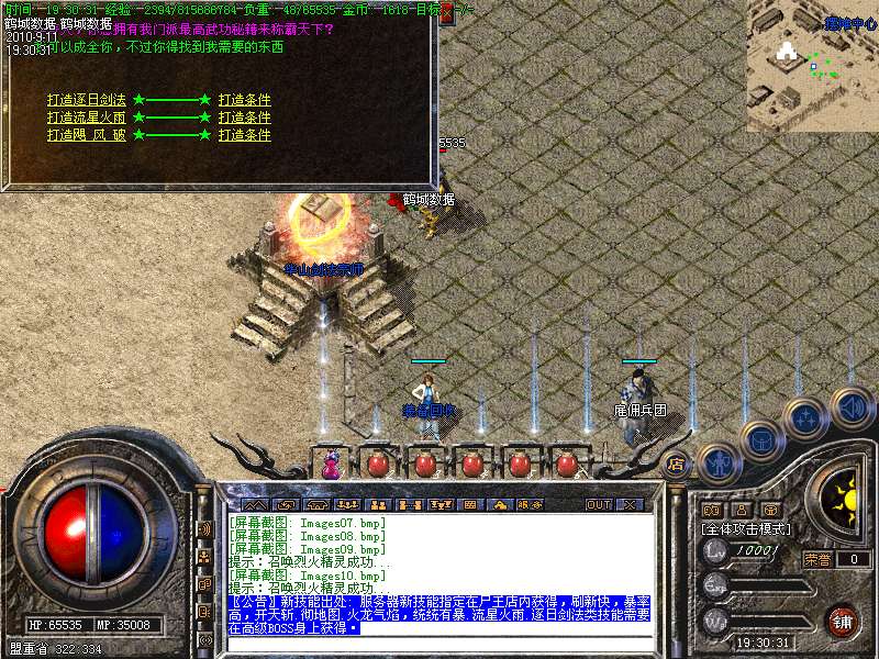 特别功能:综合服务NPC,为大家开放了,装备升级.幸运升级.装备合成.三大神兵合成.华山剑法宗师处可以合成各职业最高级技能,请大家认真熟悉游戏中的NPC功能·