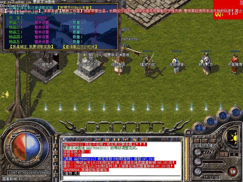 2.本版本限制主体和英雄等级2000封顶,避免血牛PK不死现象,升级非常容易,请找盟重新城右边的练级使者NPC!
