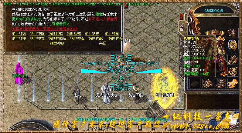 游戏中每一个整点系统会提示激情泡点,每秒可免费得到10万经验,每个半点时间,系统会提示土药打宝活动,终极神龙里面携带着大量的元宝与装备,错过必将后悔,游戏中还有很多功能,在这里就不一一介绍啦,自己好好去体会,我们将会给大家带来一个绝对公平的游戏环境,同时也真心的希望大家不用使用加速等外挂软件,我们技术一旦查出使用这些软件,降5级处理,情况严重者一律删号封IP段处理,一经删除永不恢复,删号降级不是目的,还游戏公平才是真理,真心希望大家与我们共同来维护这个属于我们娱乐放松的游戏环境,感谢大家对本网络的支持,谢谢!!!