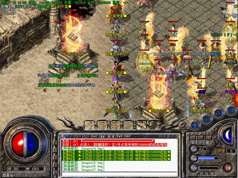 5.行会争霸每天15点,22点举行一次大型PK活动,获胜者,可以得到10000元宝,1亿经验!进入期间每秒可得15万经验哦