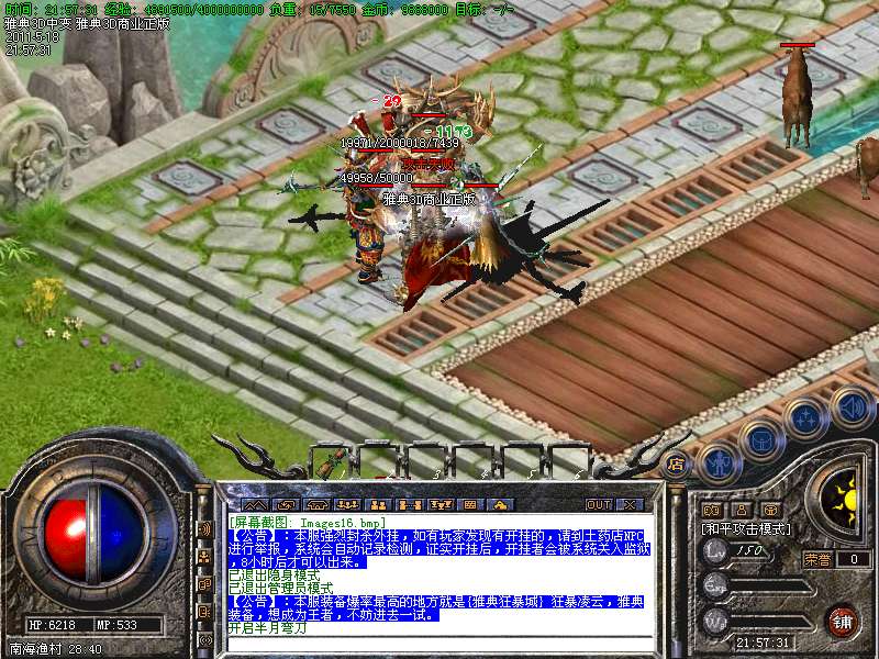 【特色9】;散人淘宝地图是个很不错的地方,怪物好打,偶尔可以爆出:残阳,凌云,甚至是雅典装备。