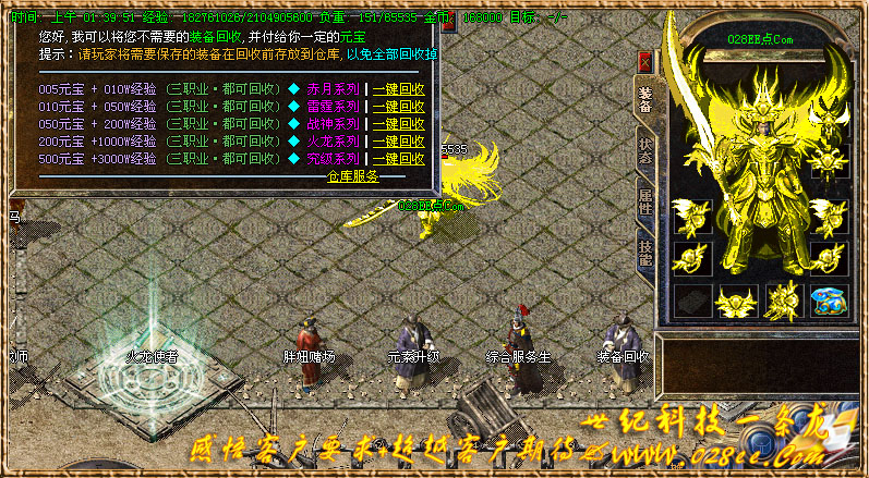 本服装备回收经验高。元宝高。而且装备暴率超高!方便玩家升级!!!!