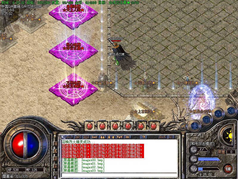 ★★游戏指南:初级新手先到矿区挖矿获得金币且可以很快升到45级,后进入尸王殿获得初级技能.然后进入新手天堂___魔龙血域.这儿的战将类怪物可以轻松获得雷霆和强化雷霆类装备.遇上魔龙教主还有机会获得战神.开天★★