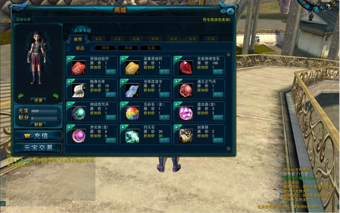3.完美仿官方商城(商业版)400多个物品(全时装,全宠物,稀有坐骑(套住玩家的那种)各种实用道 具,商城加了爆炎之刃做测试之用,不喜欢可以删掉)