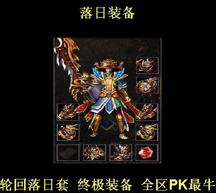 本服务器落日装备可以从落日狂暴城爆出,小怪跟BOSS都有爆率,只要你认真打,绝对拥有。