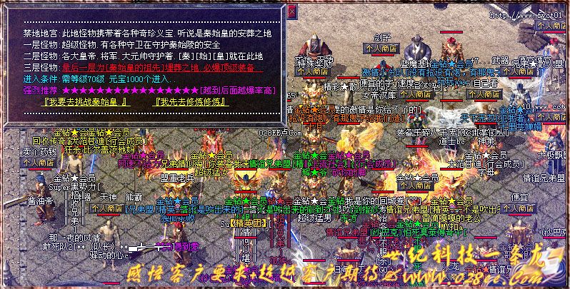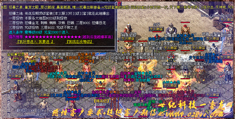 【特色⒉】:狂暴之泉,皇宫大殿,层次越深,暴率越高.唯一可暴出新装备→究级套装的地图!四级技能2小时开放一次,天下第一称号可获1.2倍攻击,天神戒,死神戒均为1.2倍攻击属性!!