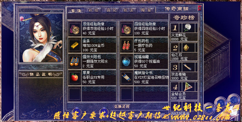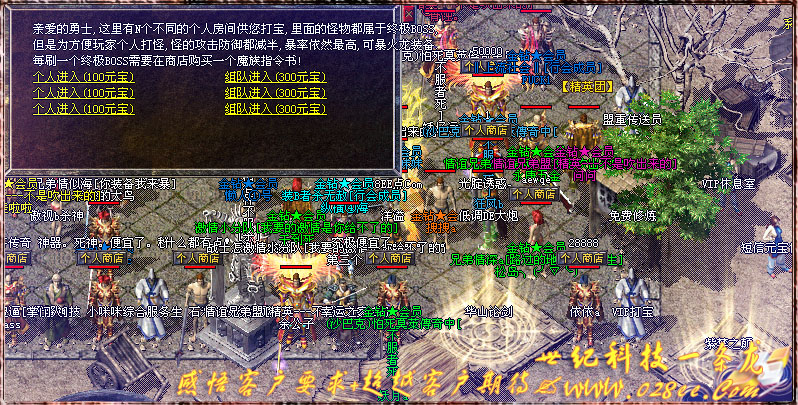 【特色⒋】:VIP打宝地图可以单人进入可组队进入,里面刷的BOSS可暴本服所有装备,和技能.暴率相当高!!!