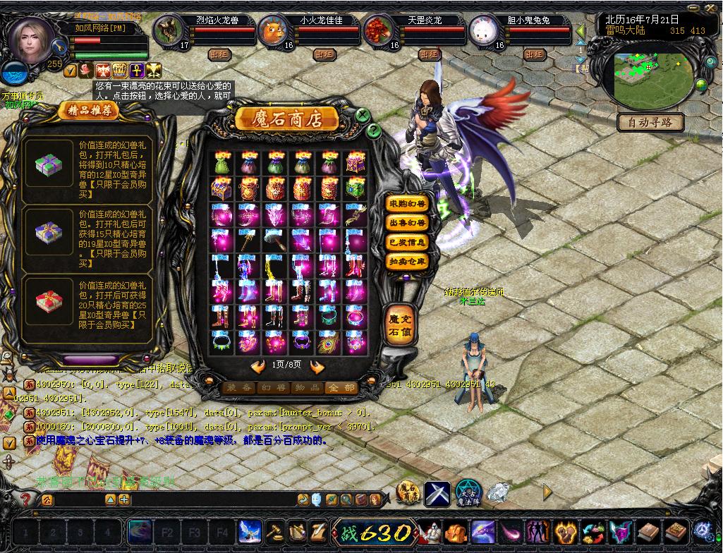 2.更新全新46只全新宝宝(该有的宝宝都有了),135级以上各职业装备,宝宝所有属性正常,装备可正常追加魔魂。