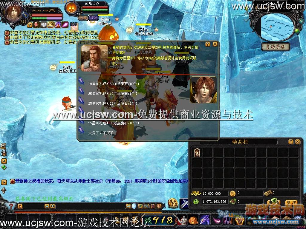 1、新加入9个新宝宝,调皮鬼狒狒、龙神捷亚、南瓜滴滴、南瓜点点 捣蛋鬼豆豆、胜天巫师、风胜麒麟、倒霉熊憨憨、开心鬼菜菜 会员宝宝分别为:(龙神捷亚、风胜麒麟、倒霉熊憨憨) 进化80* 2、最高3宠-送+150装备-不卖等级-不卖属性-不卖任何变态物品! 3、增加会员地图,分别是VIP4-VIP5-VIP6-VIP7地图; 4、BOSS爆 .....MS卡.12星XO.19星XO. 经验球阳光礼包|普通怪爆.... MS带.灵魂.幻魔等. 5、随身NPC中加入三职业转职; 6、随身NPC中加入BOSS坐标点传送; 7、随身NPC中加入在线洗PK值,批量购买XO礼包功能; 8、增加MPC和MSG的日志清理工具,以前的只有ACC,可以解决日志太多导致ACC,NPC,MSG挂死的问题。 9、家族占领系统的调整:增加家族等级对占领收益的影响,且周五、周六为免战时间 10、新增军团魔石贡献度,通过捐献魔石可以提高魔石贡献度 11、调整PK惩罚功能 12、已做千人优化,支持上千玩家同时在线。