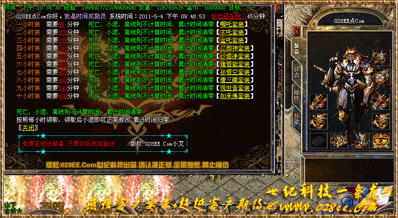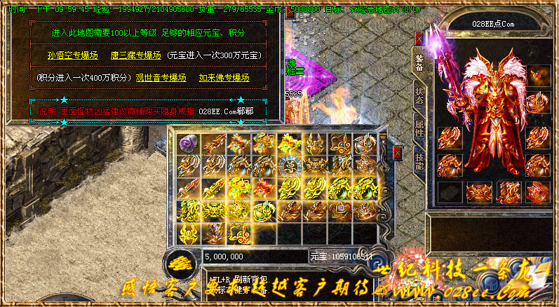 【功能介绍】:积分排行、积分回顾、灵魂打造、转世轮回、星级锻造、在线元宝奖励、在线送全服装备、魔界能量、神界九重天