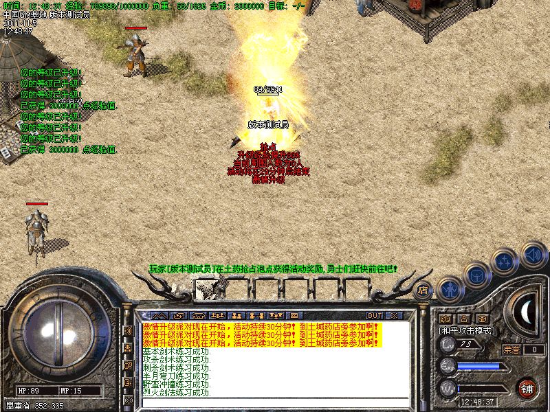 【升级方法】1.买双倍或三倍经验石打怪升级!2.回收装备升级!