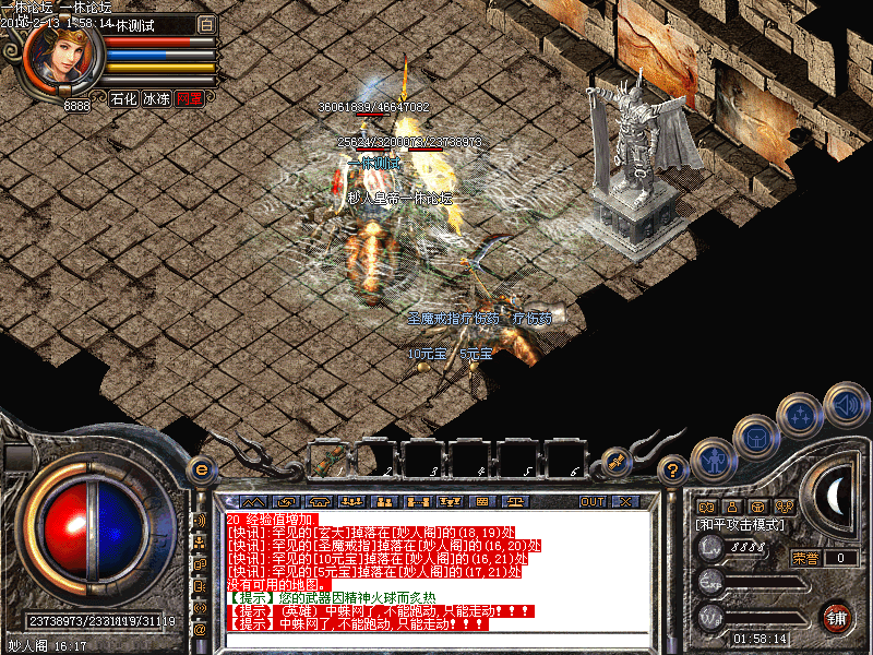 祖马六层:刷每二小时刷一次元宝大帝,心爆100元宝.