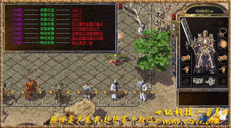 【冲级奖励】 50级1000元宝.51级2000元宝.52级3000元宝.53级凤天衣服.54级开天系类.55级至尊宝石+爱情鲜花.56级强化武器和衣服.57级强化首饰套.